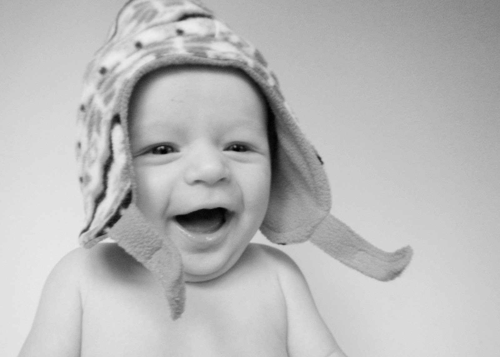 -Tries to laugh but doesn't quite have the sound yet- he sort of stops breathing then squeals really loudly as he smiles and his body shakes. It's pretty cute, but I'm eager to hear a full-blown laugh!